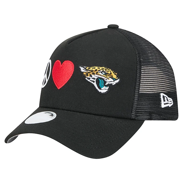 Women's New Era Black Jacksonville Jaguars Peace & Love Trucker 9FORTY Adjustable Hat