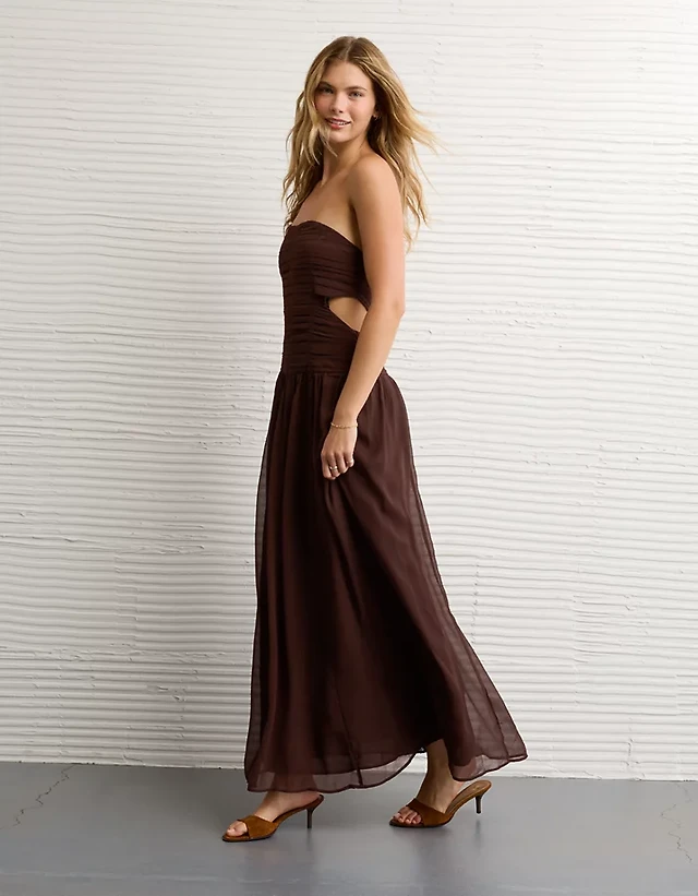AE Satin Sweetheart Off-The-Shoulder Maxi Dress