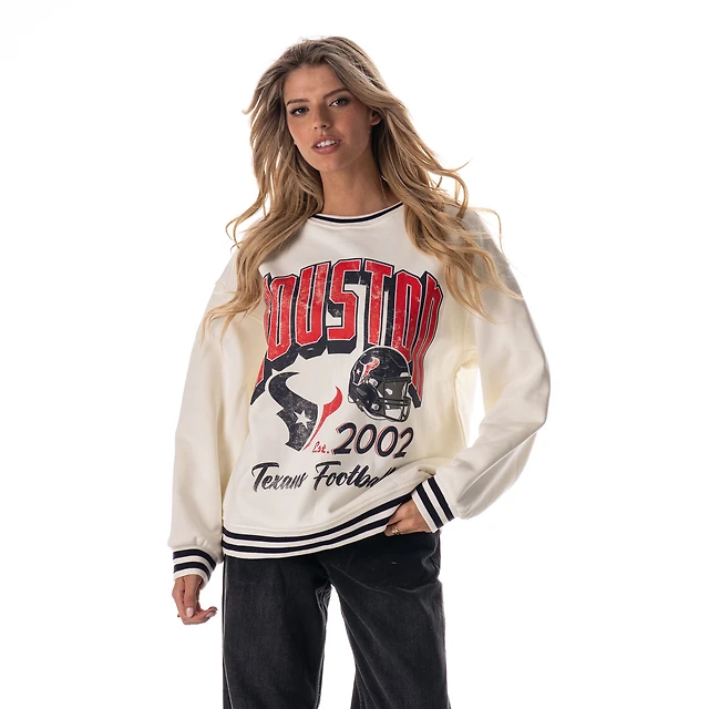 Women's The Wild Collective Cream Houston Texans Oversized Vintage French Terry Sweatshirt
