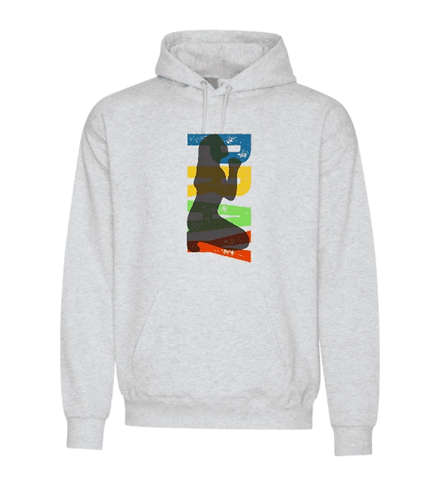 Flowy Pull-On Hooded Top with Woman Print & Metallic Foil Details by Froccella