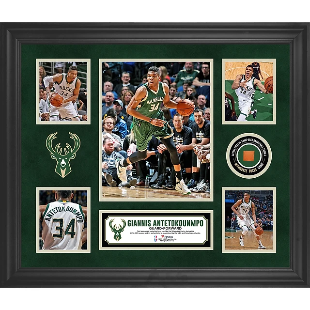 Giannis Antetokounmpo Milwaukee Bucks Framed 5-Photo Collage with a Piece of Team-Used Basketball