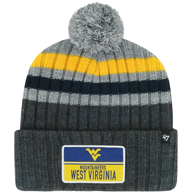 Men's '47 Charcoal West Virginia Mountaineers Stack Striped Cuffed Knit Hat with Pom