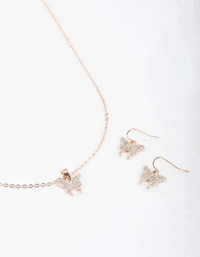 Rose Gold Butterfly Necklace & Drop Earrings Set
