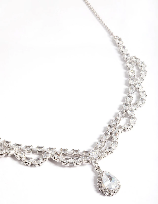 Silver Cubic Zirconia Pavé Knot Drop Earrings