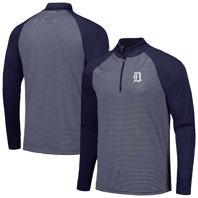 Men's Levelwear Navy Detroit Tigers Charter Striped Raglan Quarter-Zip Top