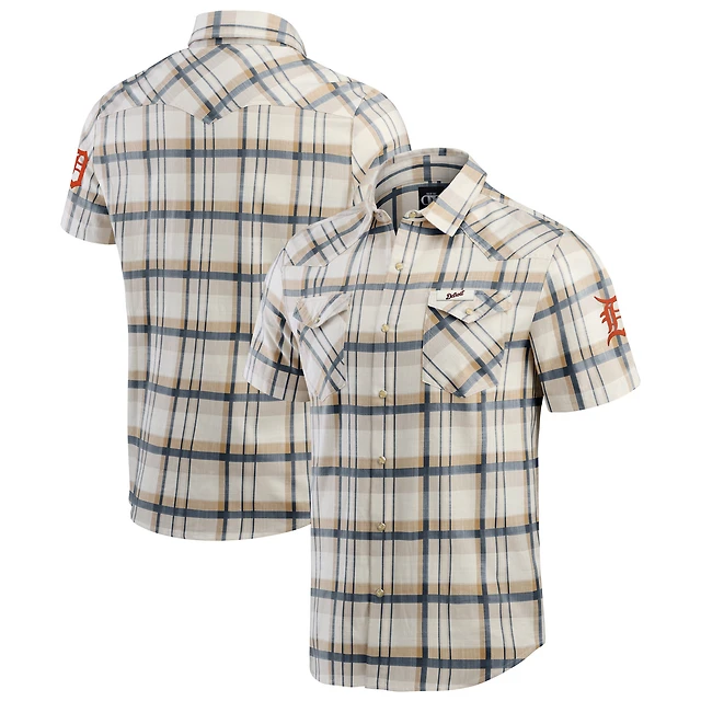Men's Margaritaville Blue Detroit Tigers Linen Party Button-Up Shirt