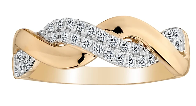 .05 Carat of Diamonds "Woven" Hearts Ring, 10kt Yellow Gold....................NOW