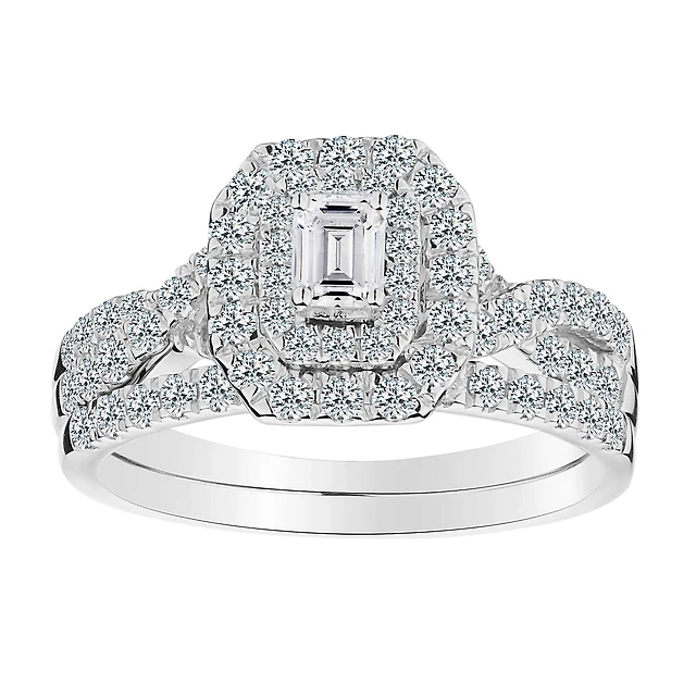 1.00 Carat of Diamonds Pear Shape Halo Ring Set, 10kt White Gold.....................NOW