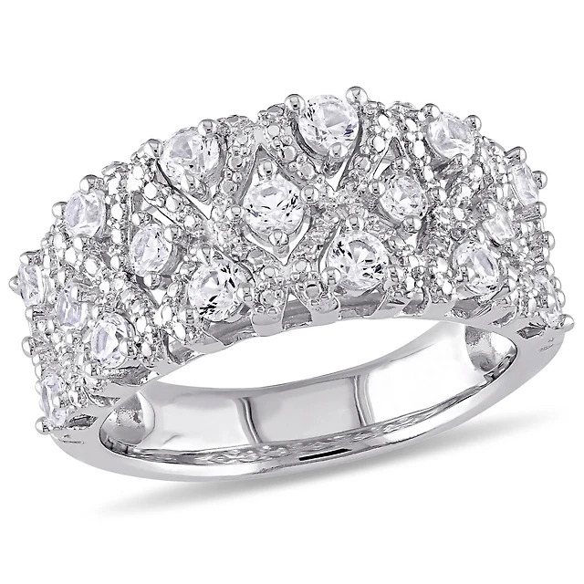 Julianna B 10K White Gold Created White Sapphire & 0.10CTW Diamond Ring