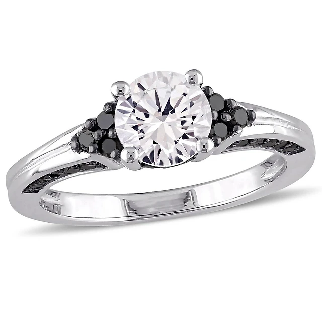 Composite Black and White Sapphire Frame Stepped Shank Ring Sterling Silver