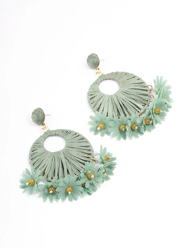 Gold Peach Acrylic Flower Beaded Hoop Earrings