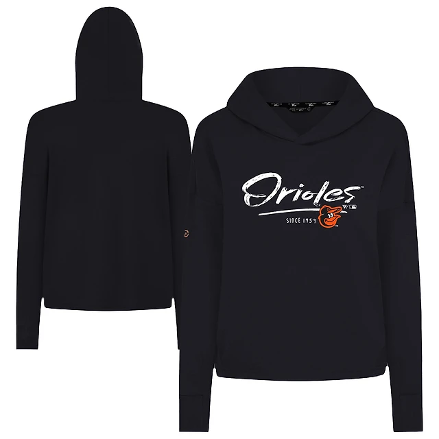 Women's Levelwear Black Baltimore Orioles Accolade Sweet Express Cropped Tri-Blend Pullover Hoodie