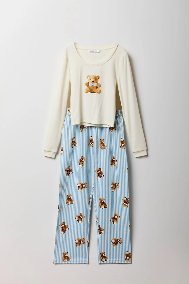 Girls Pointelle Long Sleeve Top & Pant Pajama Set