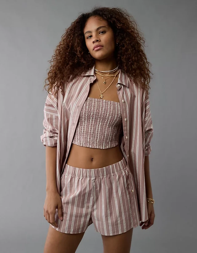 Flannel Button-Up Top & Short 2 Piece Pajama Set