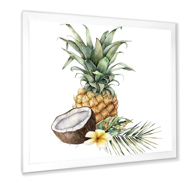 Pineapple with Coconut Plumeria and Palm Leaves Canvas Wall Art Print