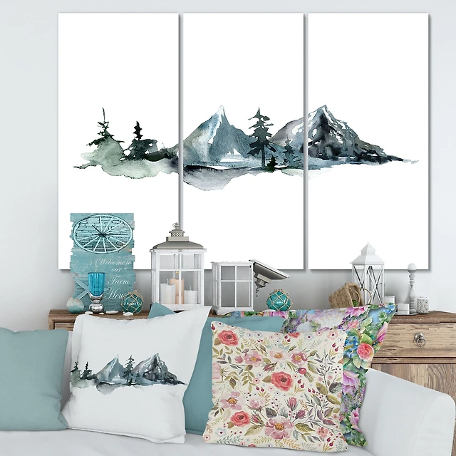 Minimalistic Winter Mountains and Fir Forest III Canvas Wall Art Print