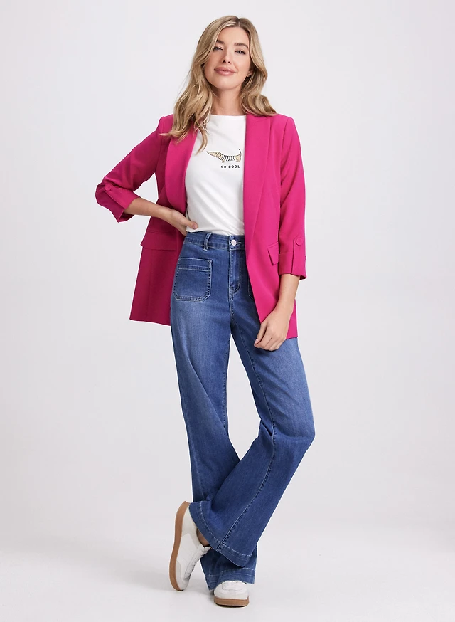 Open Twill Jacket & Patch Pocket Wide-Leg Jeans