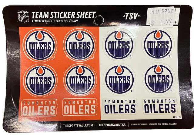 NHL Team Sticker Sheet Oilers