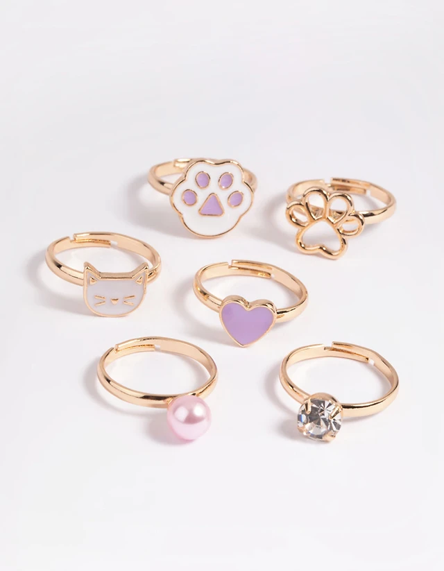 Kids Gold Cat Paw & Cat Design Stud Earrings 6-Pack