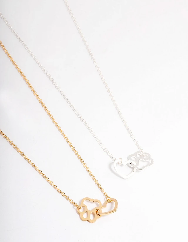 Kids Gold Paw Heart Cat BFF Pendant Necklaces 2-Pack