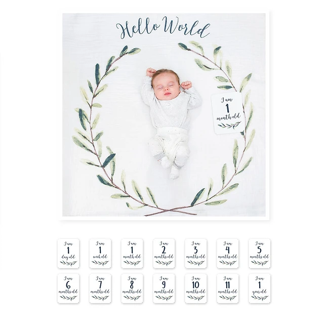 Lulujo -Baby's 1st Year Milestone Blanket Hello World Wreath