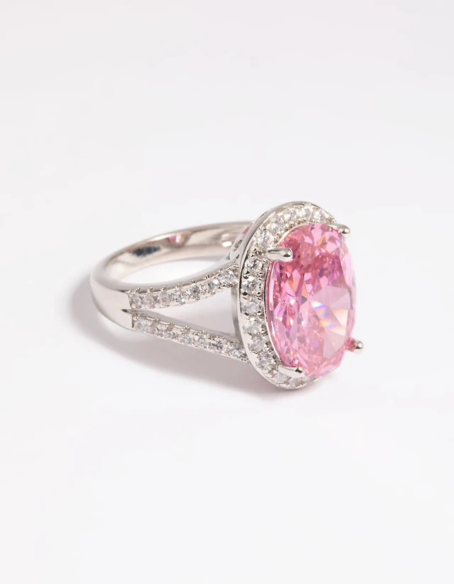 Silver Glistening Cubic Zirconia Oval Cocktail Ring