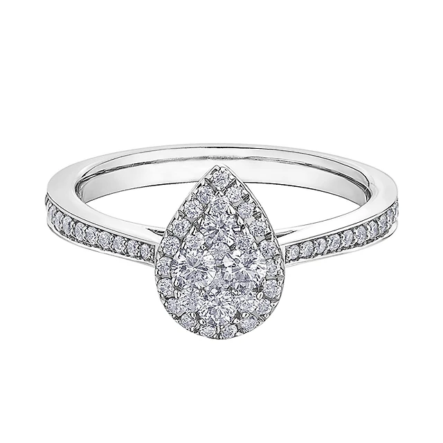 0.50 CT. T.W. Pear-Shaped Multi-Diamond Frame Ring 10K White Gold