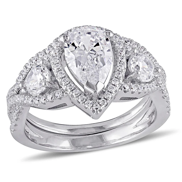 Pear-Shaped White Lab-Created Sapphire Three Stone Ring Sterling Silver
