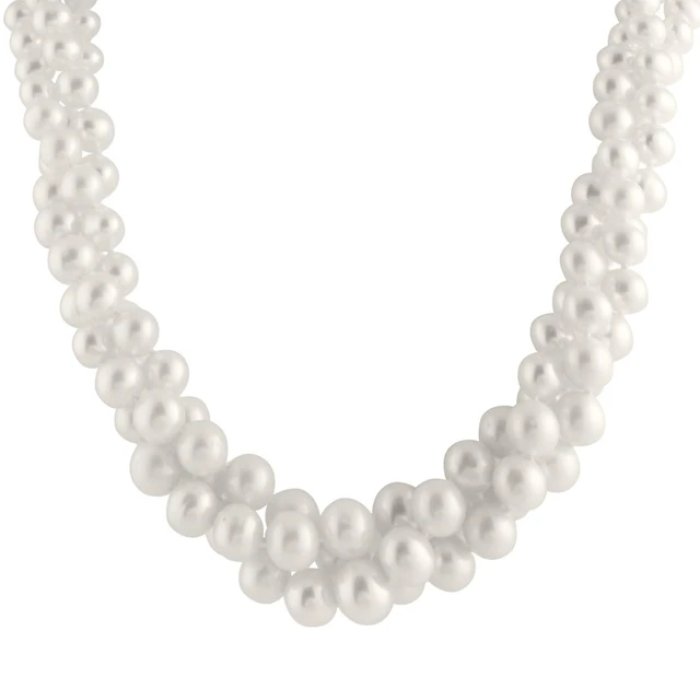 6.5mm Freshwater Cultured Pearl Double Strand Necklace with 14K Gold Round Filigree Clasp