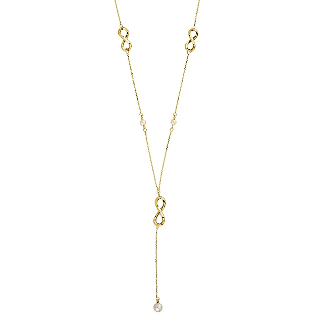 Oval Freshwater Cultured Pearl Cross Station "Y" Necklace in 10K Gold