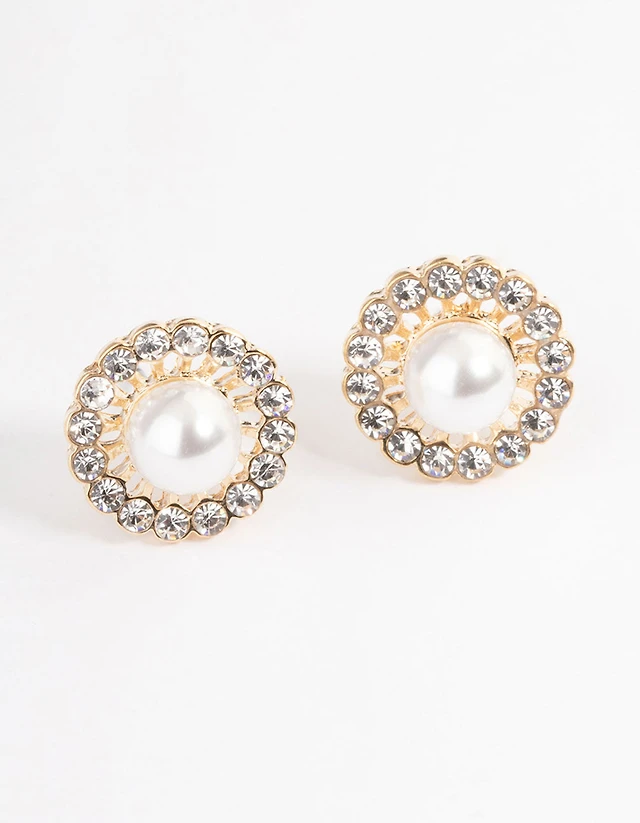 Gold Diamante Pearl Floral Clip On Earrings 4-Pack