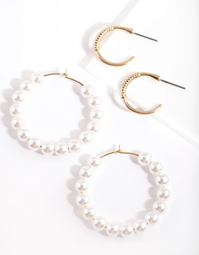 Gold Pearl Diamante Mini Earring Pack