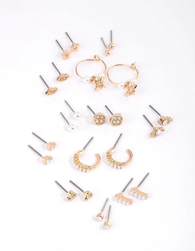 Gold Pearl Stud & Hoop Earring 8-Pack