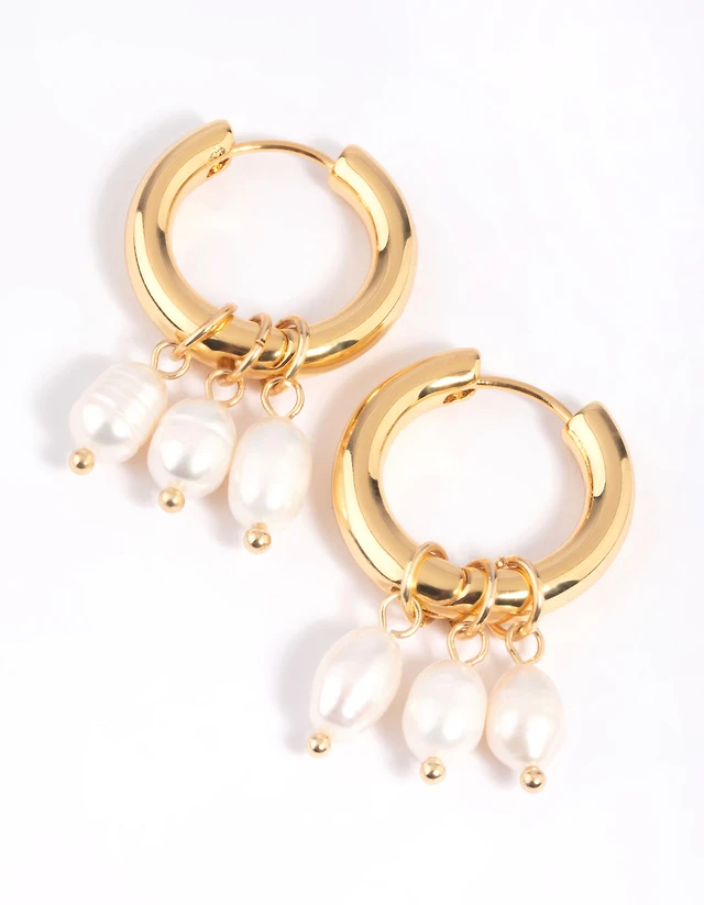 Gold Plated Freshwater Pearl Huggie Hoop Earrings