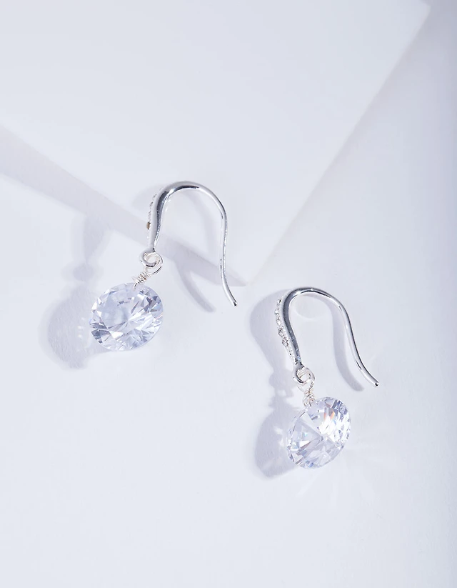 Silver Cubic Zirconia Classic Diamante Drop Earrings