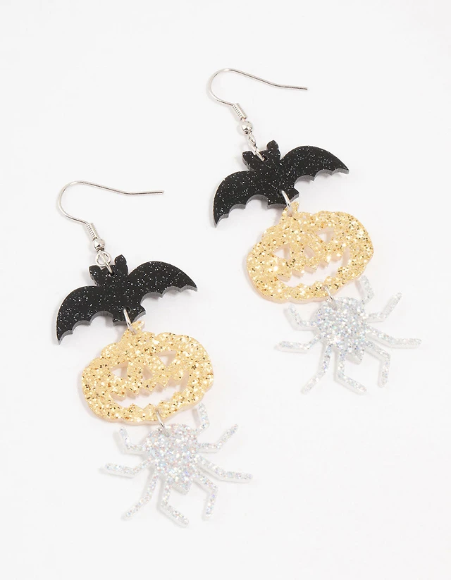 Enhanced Black and White Diamond Accent Flame Drop Earrings in Sterling Silver