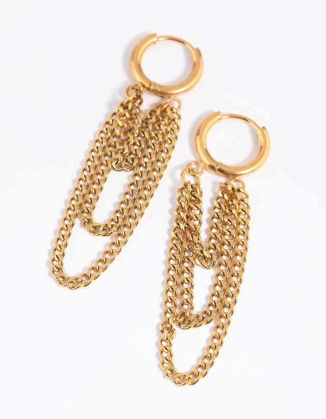 Waterproof Gold Plated Stainless Steel Chain Drop Earrings