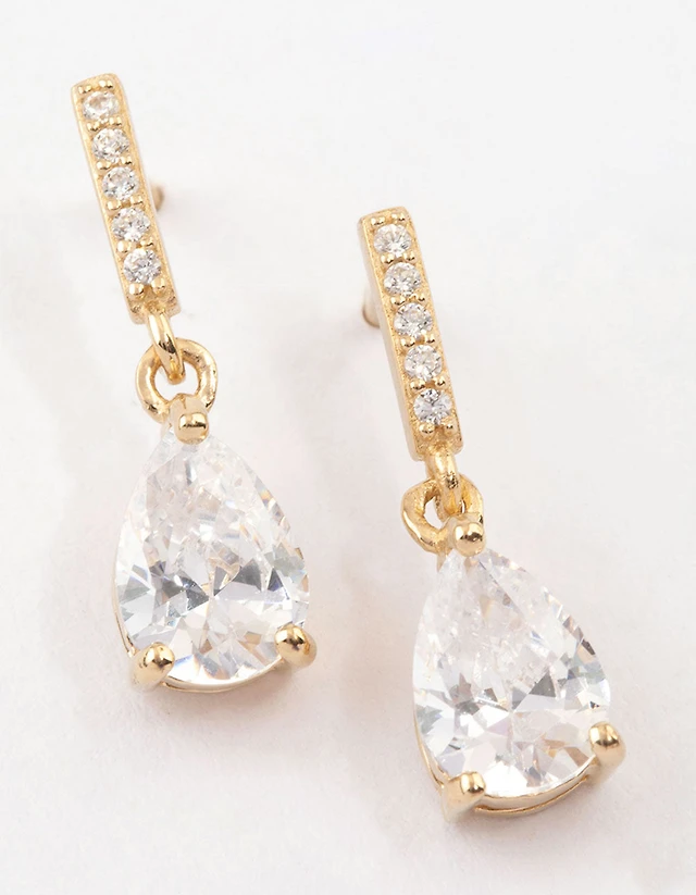 Gold Plated Surgical Steel Small Cubic Zirconia Drop Earrings