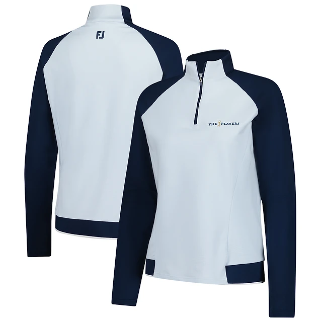 Women's FootJoy Light Blue THE PLAYERS Stripes Raglan Quarter-Zip Pullover
