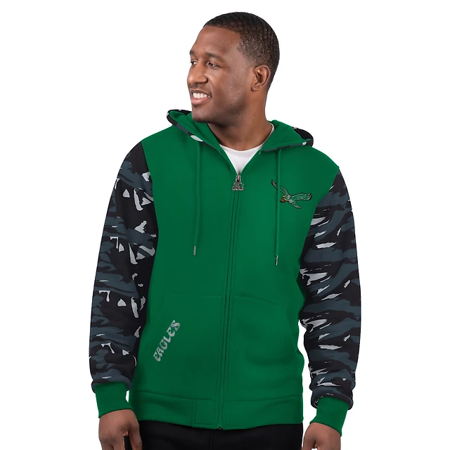 Men's Pro Player Kelly Green/Black Philadelphia Eagles Retro Helmet Full-Zip Hooded Track Jacket