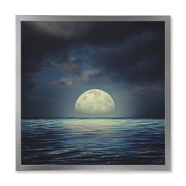 Blue Seashore with Distant Sunset Canvas Wall Art
