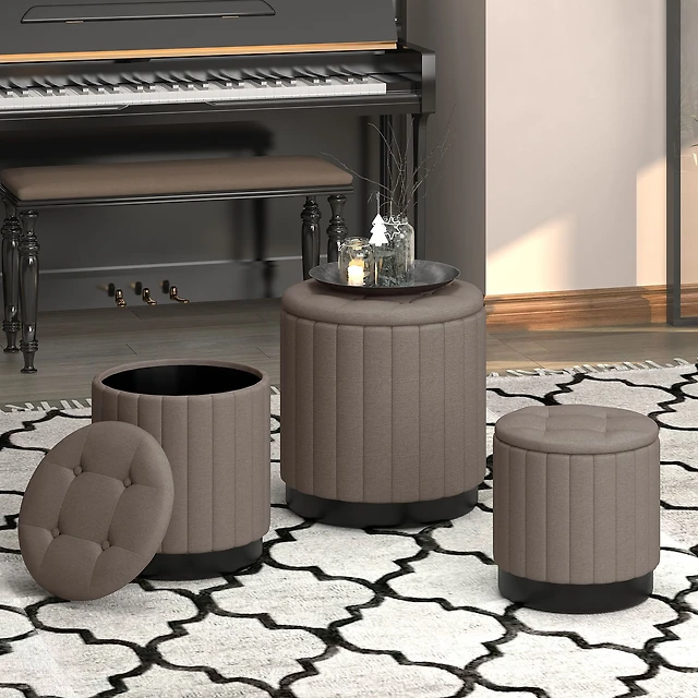 Lexi Storage Ottoman, 3 Pieces - Grey/Black