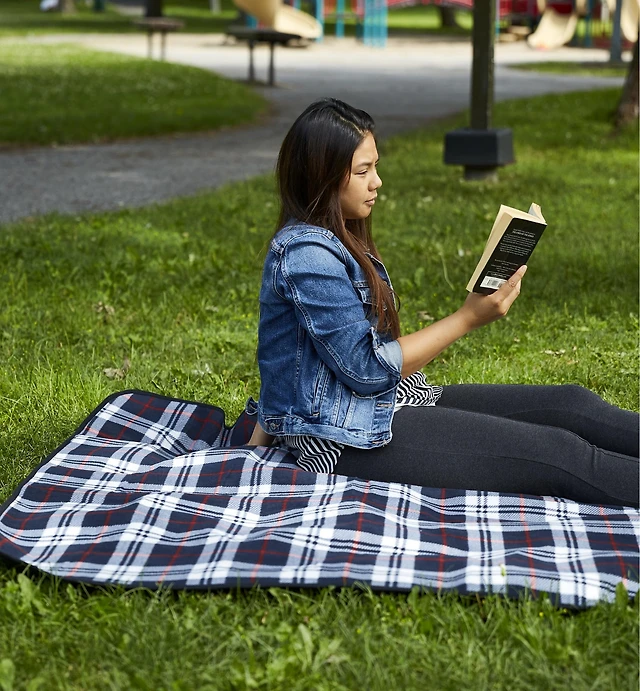 Ardene Blanket Stitch Plaid Scarf in Black | Polyester