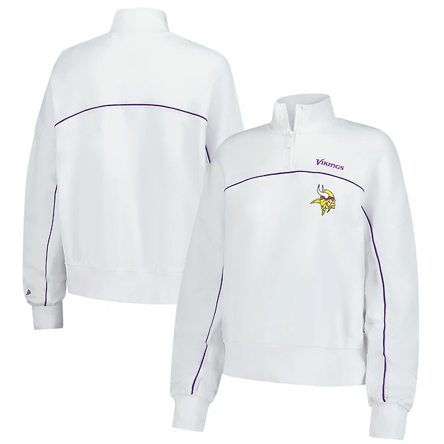 Women's New Era White Minnesota Vikings Functional Fandom Quarter-Zip Sweatshirt