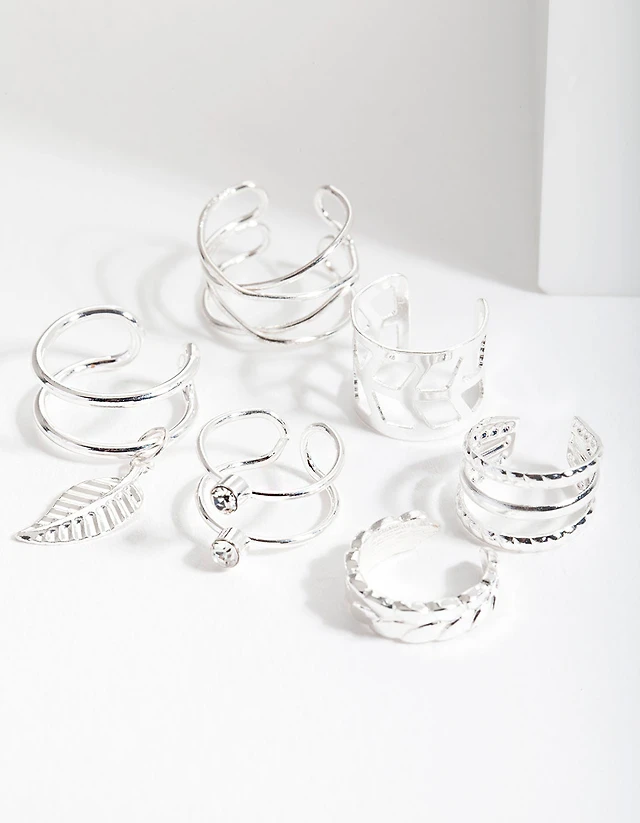 Silver Mixed Leaf Ear Cuff 6-Pack