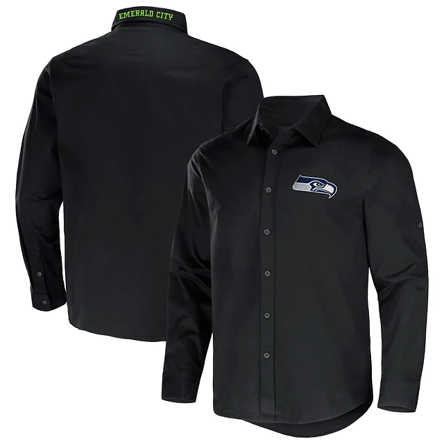 Men's NFL x Darius Rucker Collection by Fanatics Black Seattle Seahawks Convertible Twill Long Sleeve Button-Up Shirt