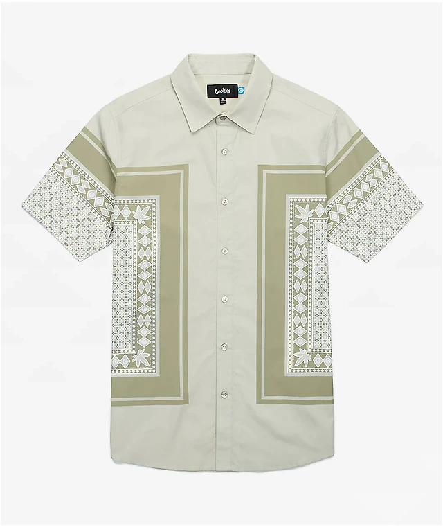 Cookies First Light Woven Sand Short Sleeve Button Up