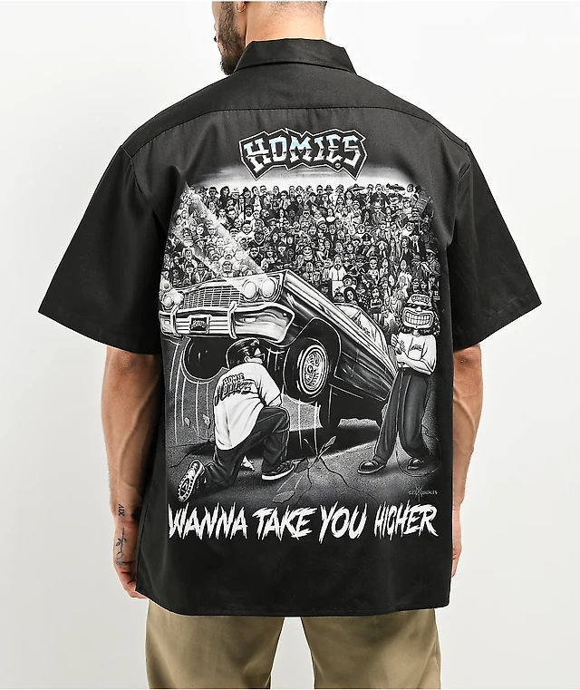 DGA Homies Wanna Take You Higher Black Button Up Short Sleeve Shirt