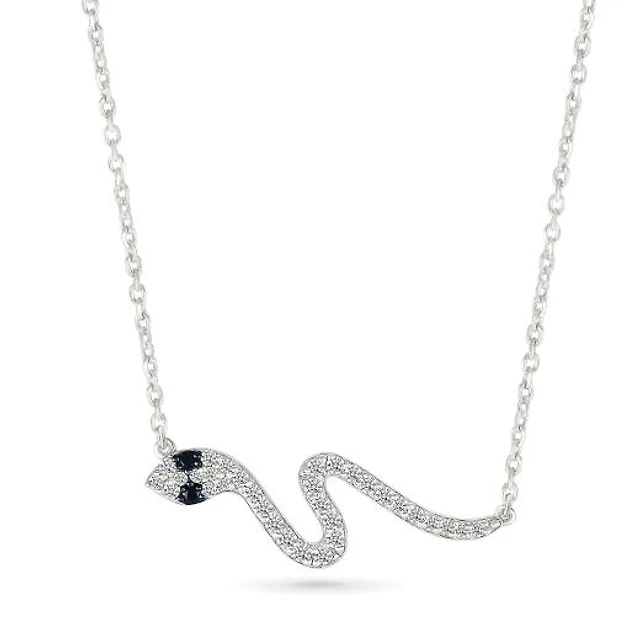 0.18CTW Black & White Diamond Snake Necklace in Sterling Silver