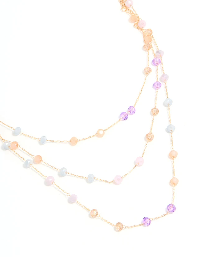 Gold Plated Beaded Semi Precious Stone & Disc Layered Bracelet
